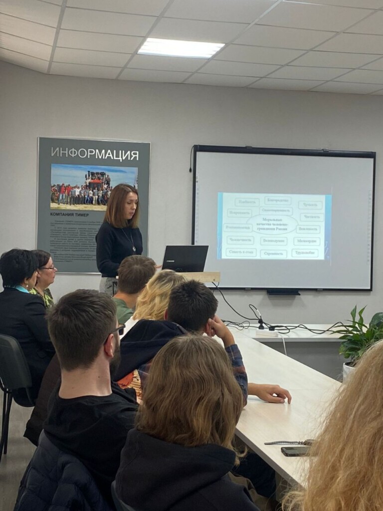 Инженерный факультет удивил своих слушателей — молодых ребят обсуждением вопросов: «Роль физической культуры и спорта в духовно-нравственном воспитании личности», подготовленного Еленой Макаровой, доцентом, кандидатом наук; «Роль и влияние семьи на формирование и развитие духовно-нравственных ценностей личности» — Ирина Петрова, доцент, кандидат наук.