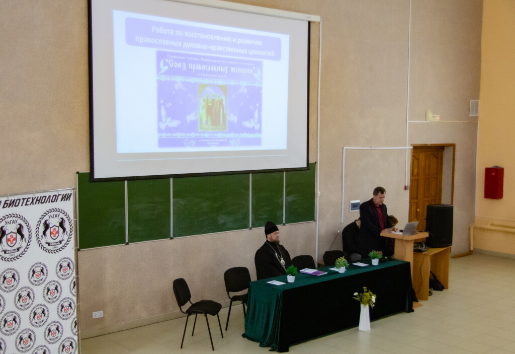 В лекционной аудитории факультета ветеринарной медицины и биотехнологии, которая разместила более 120 человек, собрались студенты с разных факультетов, педагоги, представители руководства факультетов, Агентство ветеринарии и духовенство Чердаклинского благочиния.