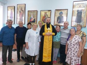 Батюшка, после проведенного в молельной комнате молебна, поздравил медицинский персонал и пациентов с праздником, рассказал о житии Небесного Покровителя Мелекесской епархии и пожелал всем доброго здоровья.